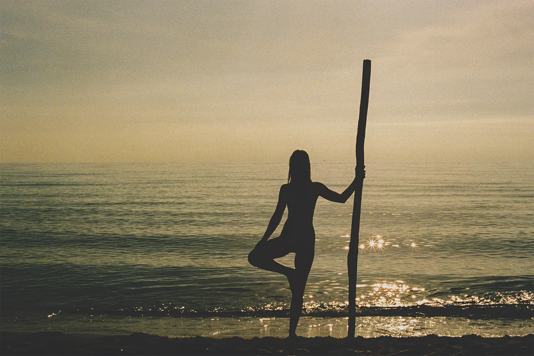 Immerse yourself in the tranquil beauty of 'Sunset Silhouette Balance,' a Hommage print that captures the harmony of yoga by the sea. As the day closes, the graceful figure against the fading light offers a moment of peace and balance.